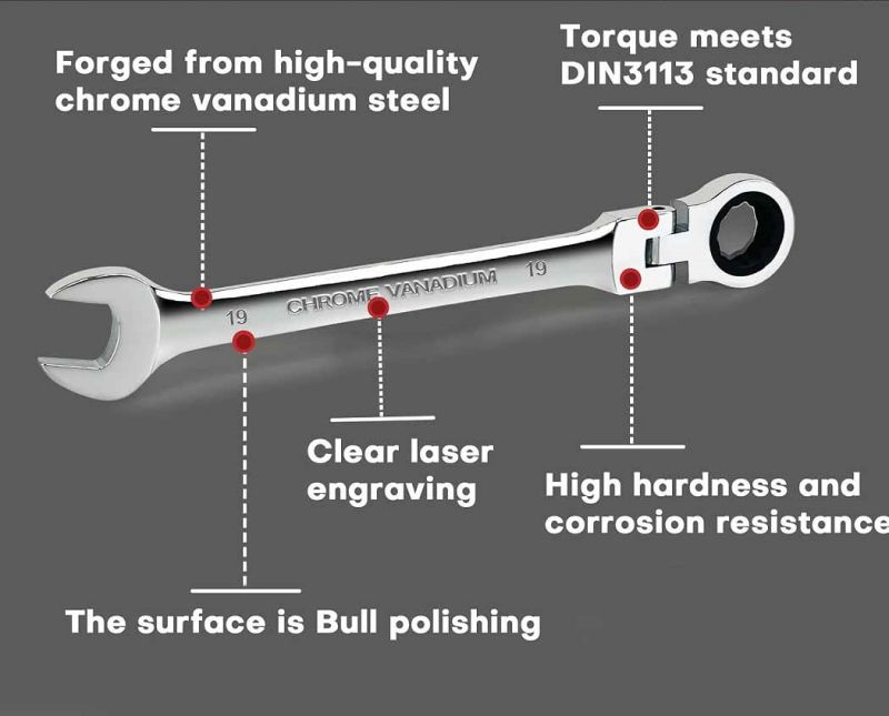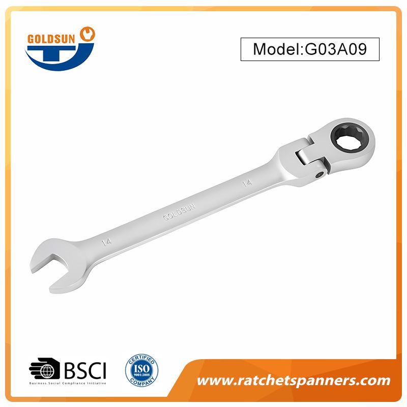 Наша компания Gold Sun Tools, один из первых поставщиков ключей с храповым механизмом в Китае, с более чем 20-летним опытом производства, предлагает ключи с храповым механизмом с гибкой головкой 14 мм и 12-гранной конструкцией. Он может выполнить точные ремонтные работы в любом пространстве.