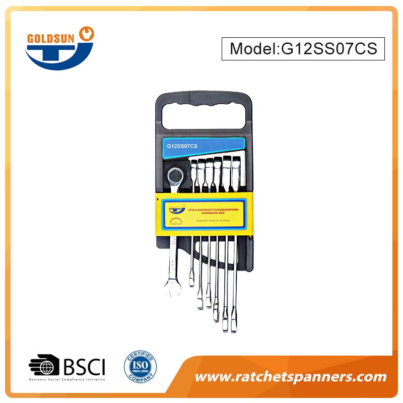 Набор ключей с храповым механизмом из хромованадиевой стали, состоящий из 7 предметов, предназначен для промышленного использования, чтобы сэкономить рабочее время и обеспечить более надежный захват многих типов гаек. Его крутящий момент превышает стандарт DIN3113.